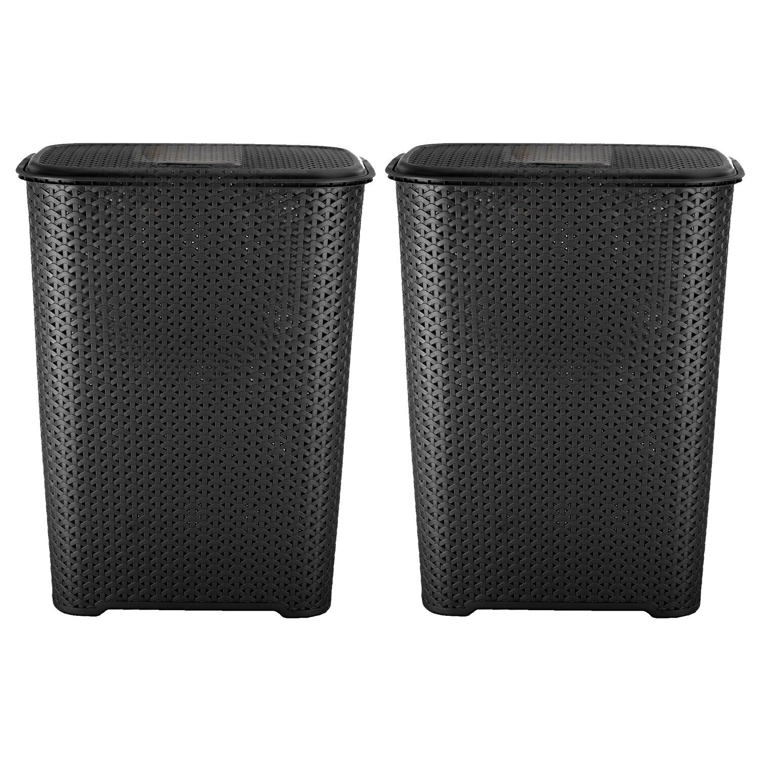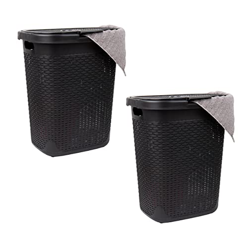 Mind Reader 50L Slim Laundry Hamper Set of 2 Black Wicker Lid Plastic Laundry Basket 45cm L x 34cm W x 53cm H