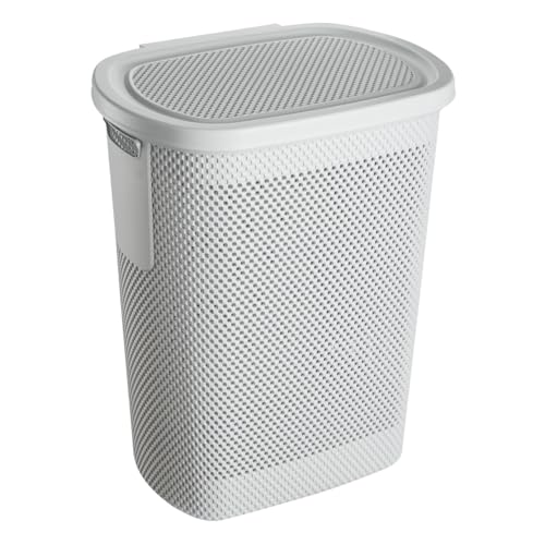 Mind Reader Perforated Plastic Hamper with Lid, 60 Liter/16 Gallon, Lightweight Hamper, Black Laundry Hamper