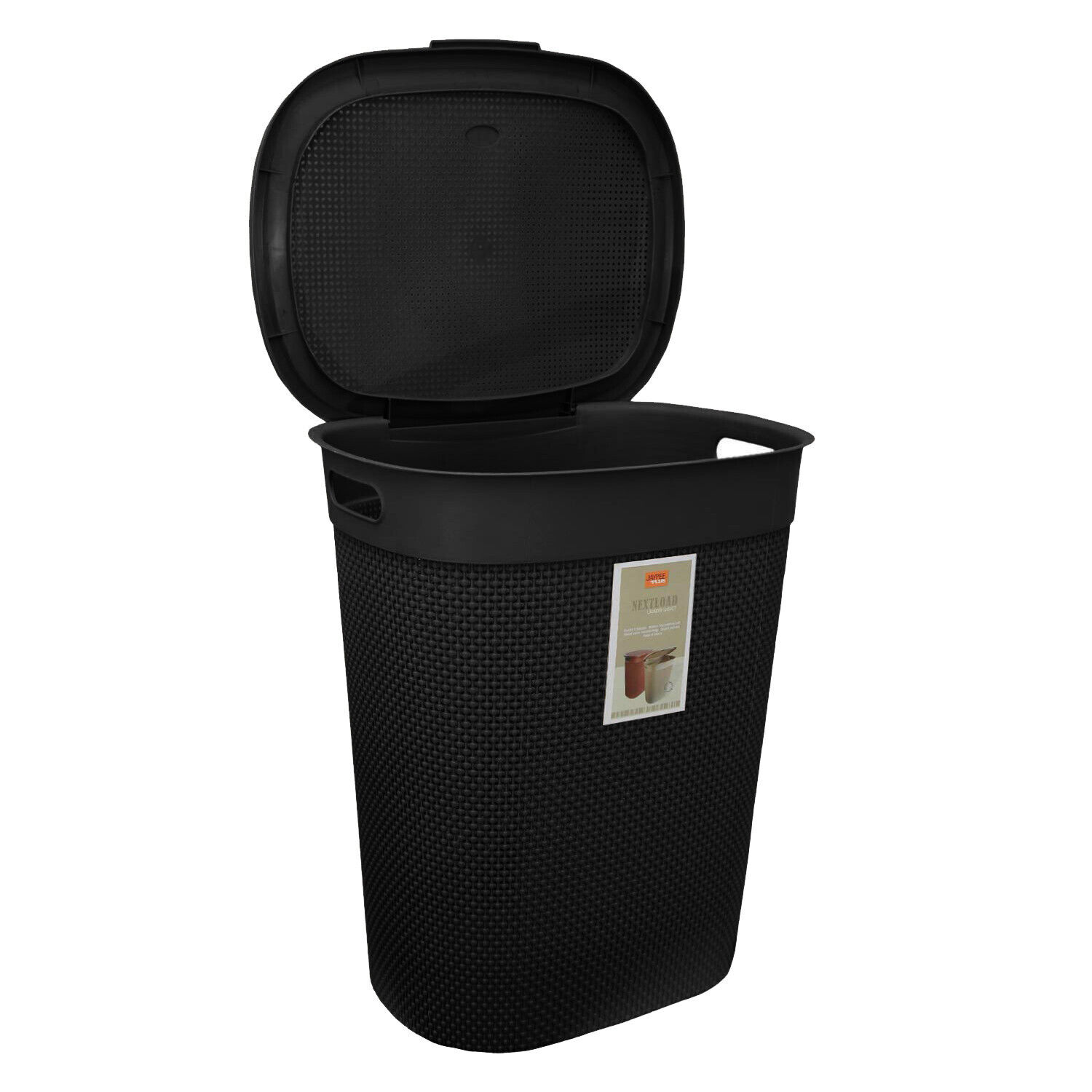 65 Litre Large Laundry Basket with Flip Lid Knit Design Plastic Hamper Washing Baskets - Freestanding Sturdy Tall Laundry Basket for Linen Clothes Storage (Black)