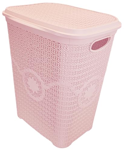 Best House | Plastic Laundry Basket | PINK | 65 Litres | Large | Knitted/Rattan Style | Laundry Storage Basket with Lid | Clothes Storage Washing Bin Basket Hamper for Bathroom Bedroom (Pack of 1)
