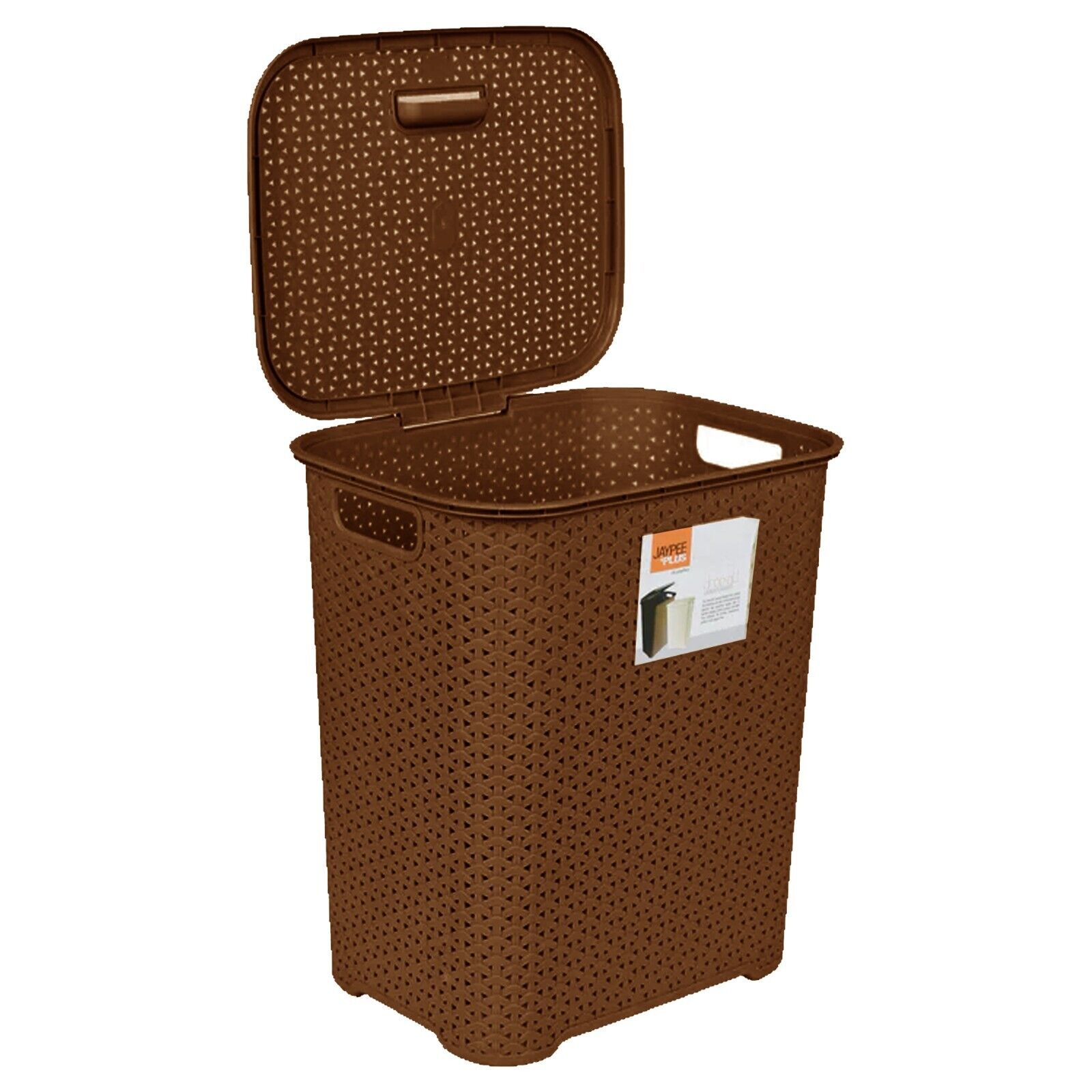 Drop All Small Plastic Laundry Basket Lid Brown Washing Clothes Storage Hamper