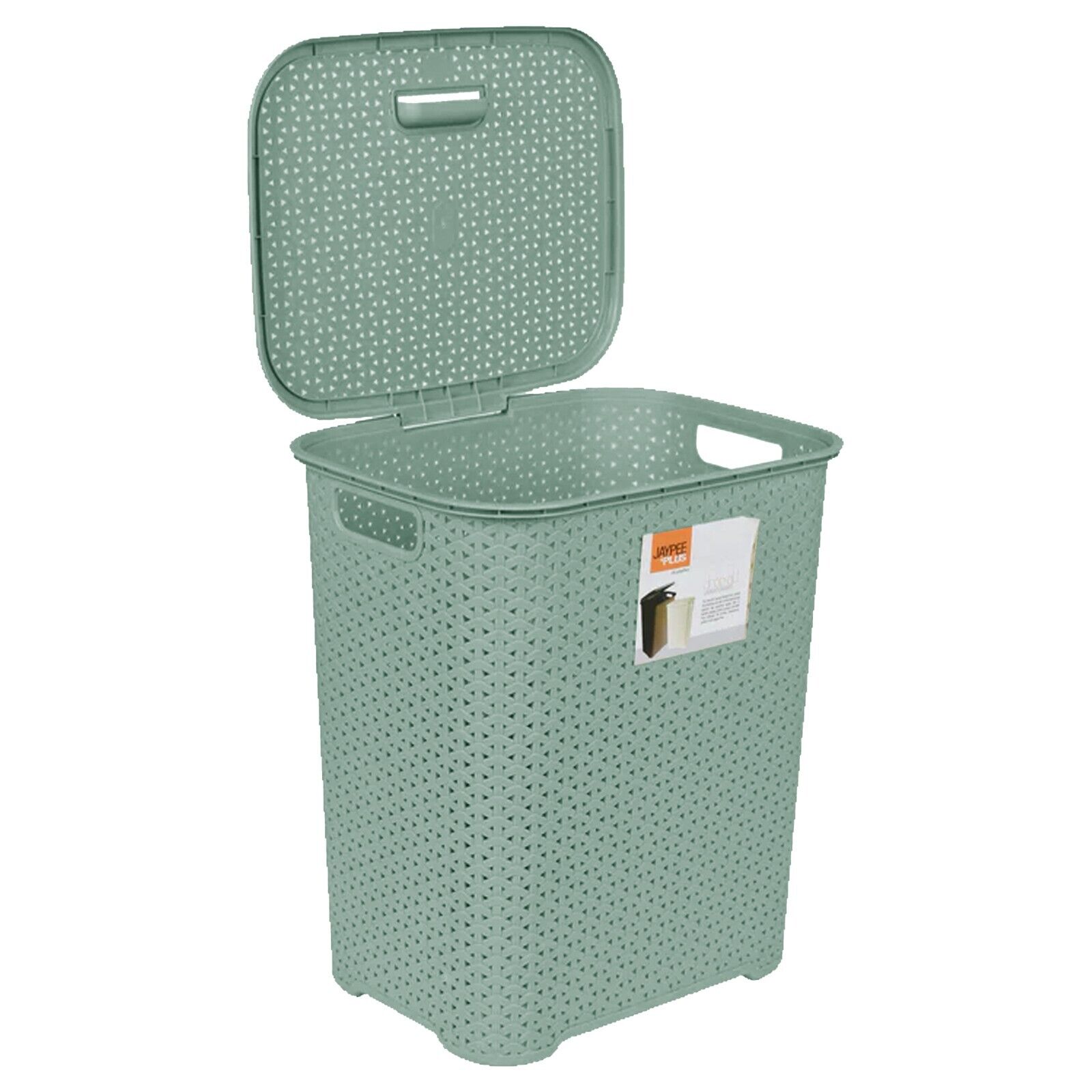 Mind Reader 40L Slim Laundry Hamper, Clothes Basket, Lid, Wicker Design, Plastic, 18"L x 10.4"W x 23.5"H, Mint