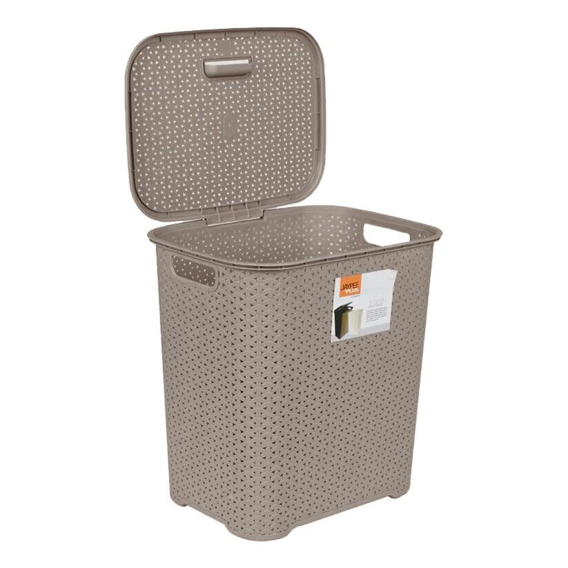 Drop All 45L Small Plastic Laundry Basket with Lid Washing Clothes Hamper Mocha