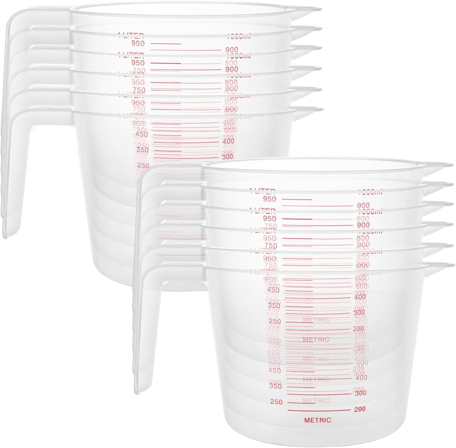 12 Pcs Plastic Measuring Jugs, 1 Litre Plastic Jug with Measuring Scale, Clear