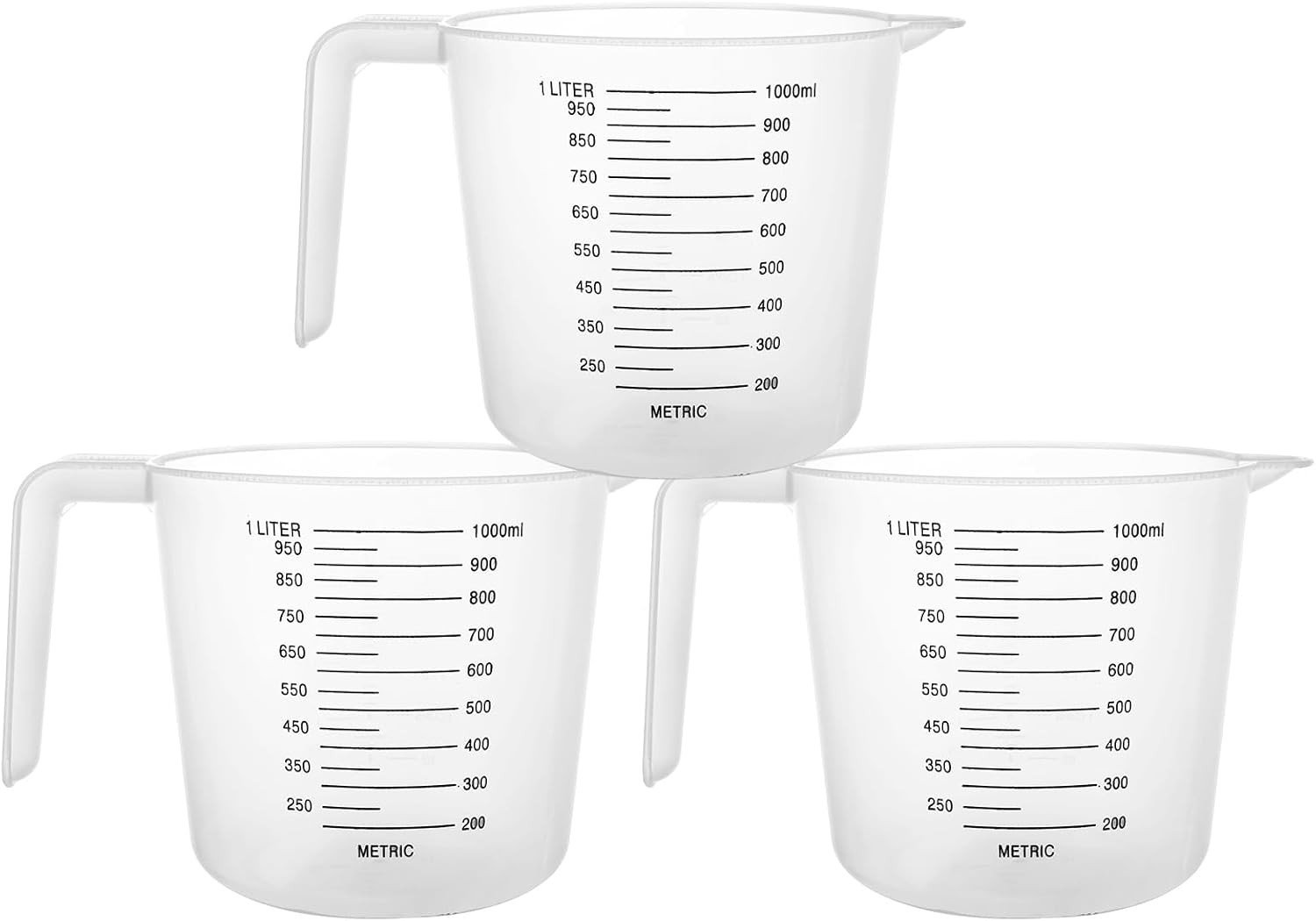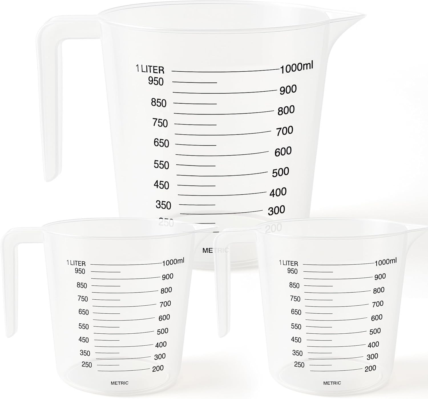 3pk 1Litre Measuring Jug | Plastic Measuring Jugs for Baking & Measuring Liquids | Clear Measuring Scales, Large Mouth & Easy Pour Spout | I