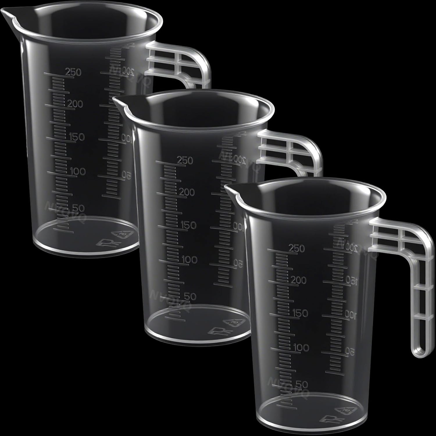 3Pk Plastic Measuring Jugs Set 250ML 500ML 1000ML, Clear Measuring Cup with Hand