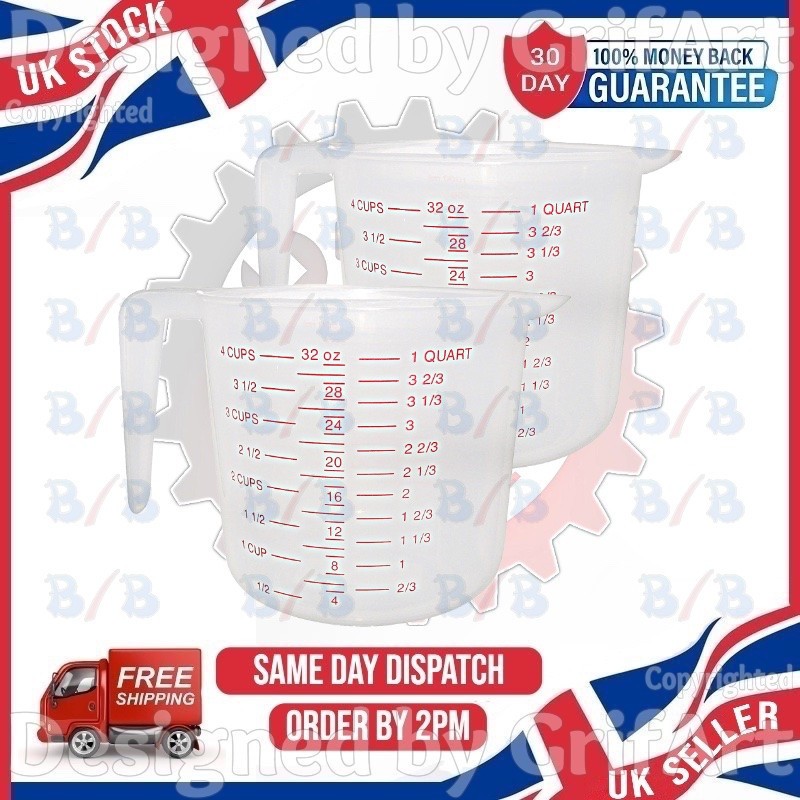 2 LARGE 1 LITRE MEASURING JUGS PLASTIC SET LARGE WITH HANDLES SCALE KITCHEN CUPS