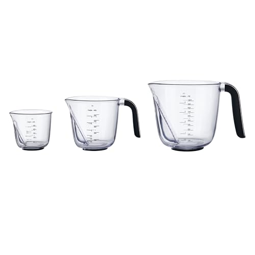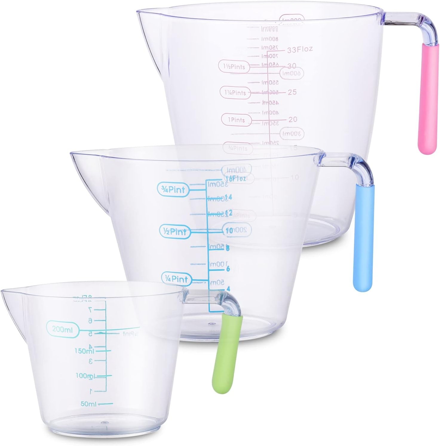Surflyee Plastic Measuring Jugs 3PCS, Kitchen Baking Jugs Set, 1000ML, 500ML, 250ML, BPA-Free Plastic Cups - Clear, Easy to Read Measurement