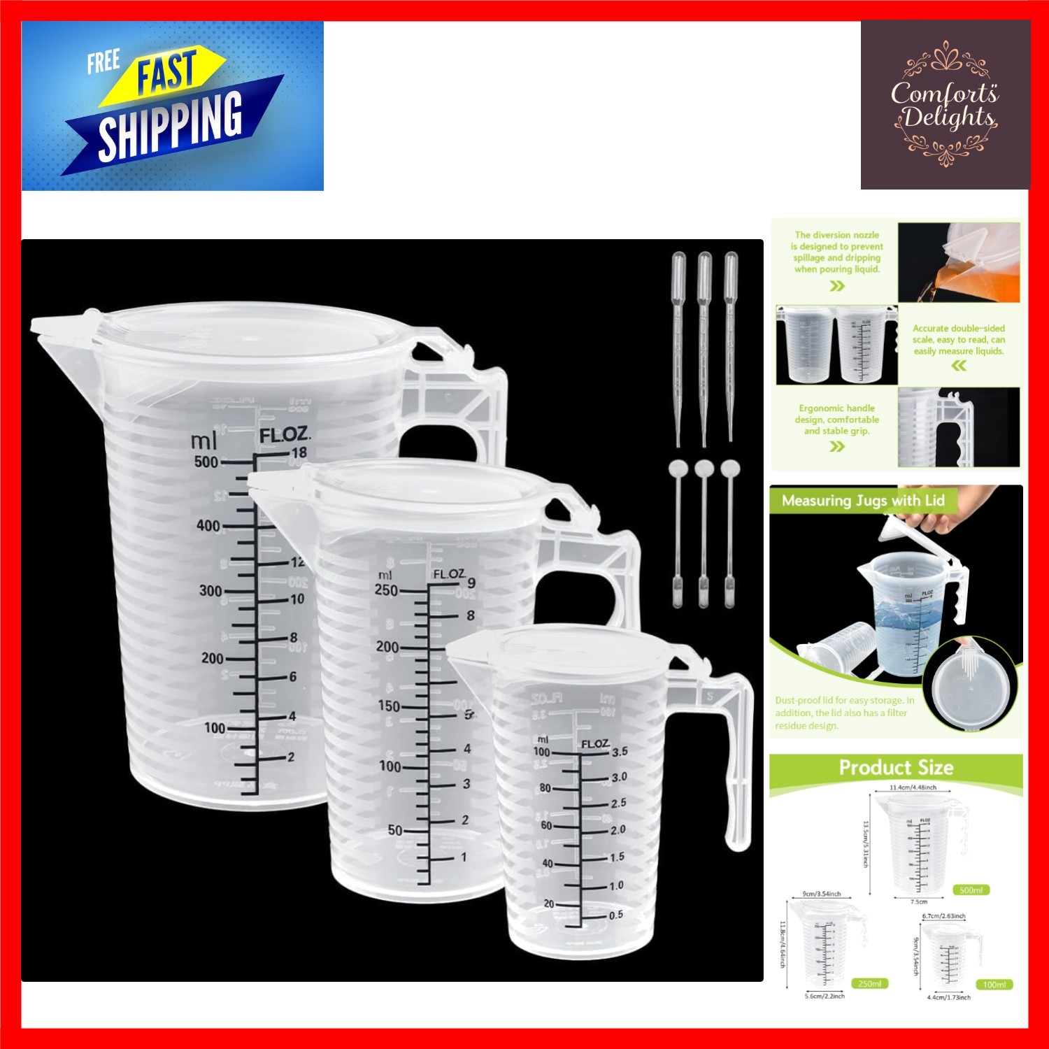 3 PCS Measuring Jugs Set 100ml 250ml 500ml Clear Plastic Measuring Jugs Lab Gra