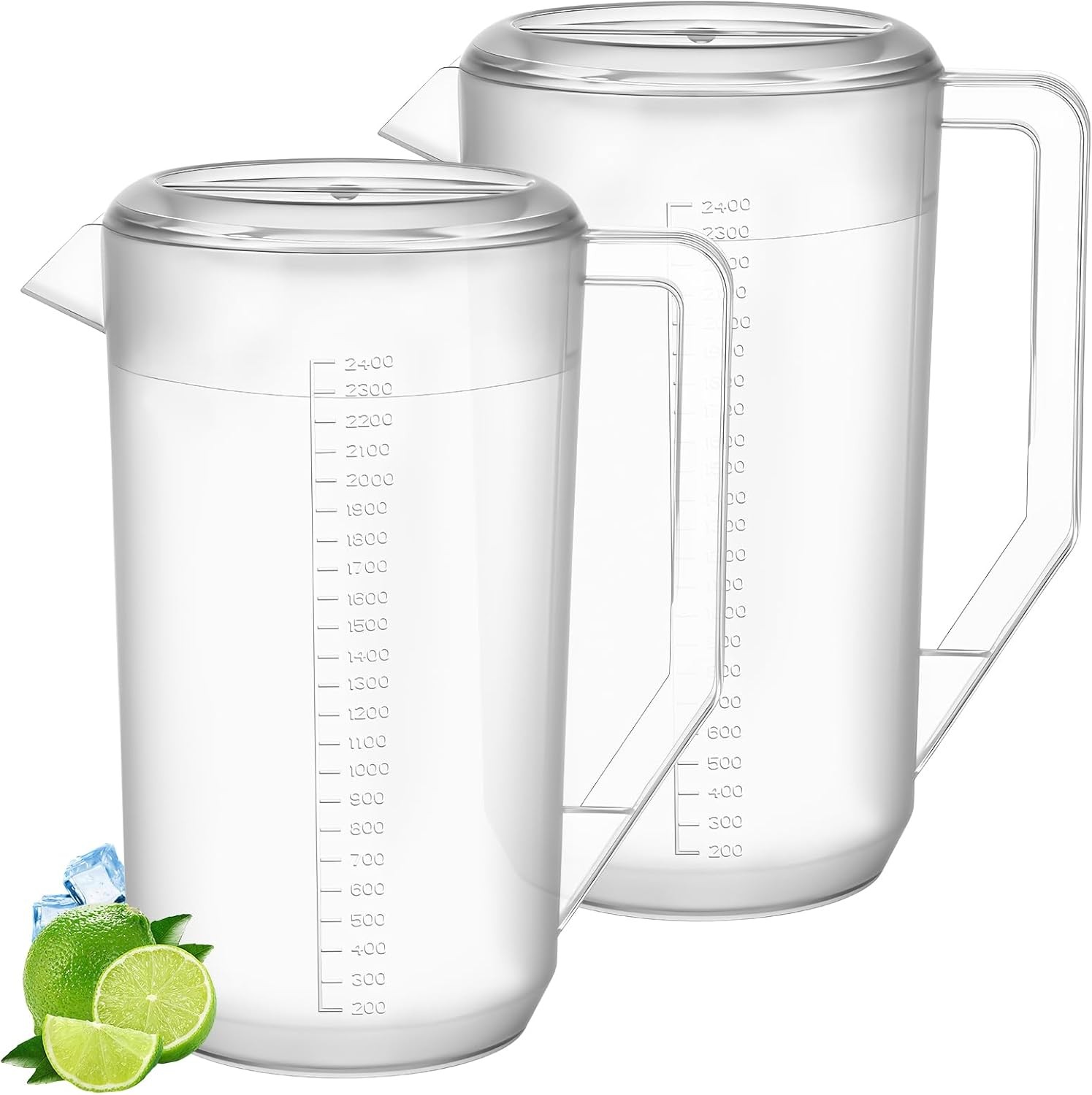2 Pack Plastic Jugs with Lid, 2.4 Litre Clear Water Pitcher with Scale and Hand