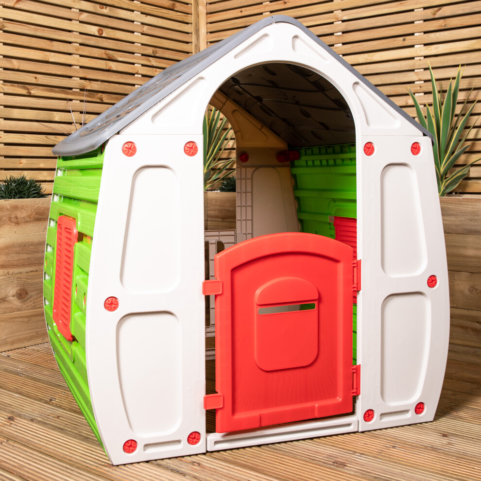 Garden Store Direct 10-561 Magical House Kids Playhouse - Indoor/Outdoor Children's Play Tent with Door & Windows, 102x90x109cm, Easy Assembly Plastic Toy House Multiple Colours Available! (Red Roof)
