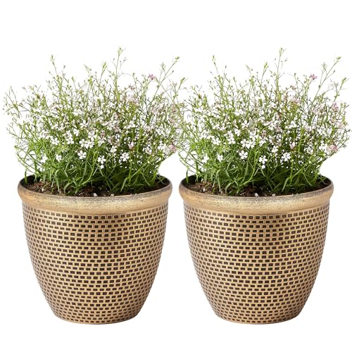 SG Traders 2 X Large Plastic Round Cromarty Plant Pots Flower Pot Planter Garden Decoration Gold 30cm Plant Pot Outdoor Flower Pots Outside Garden Planters Outdoor With Drainage Holes