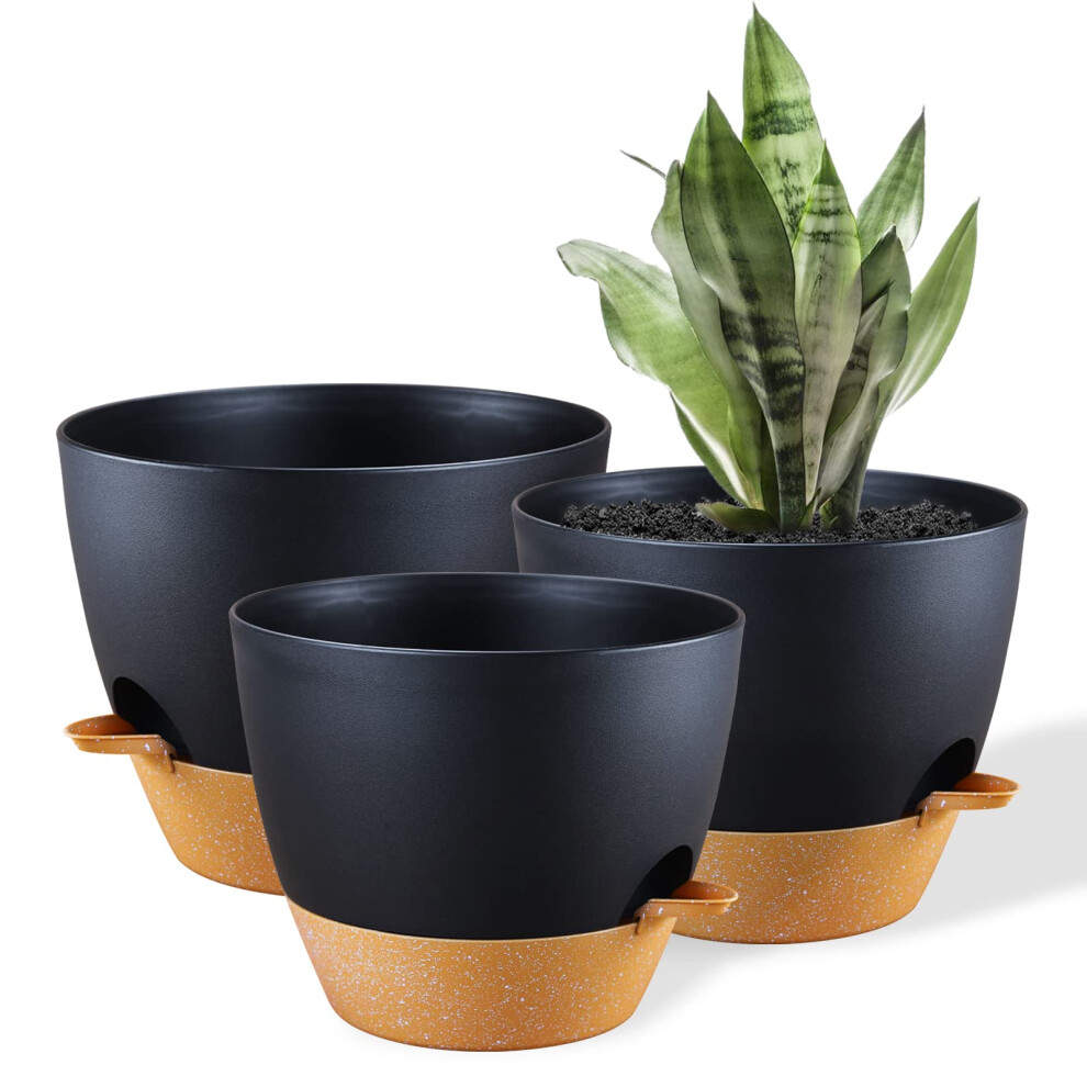FORAGIFT 25/23/20cm Self-Watering Plant Pots Indoor, 3 Pack Large Plastic Plant Pots with Deep Reservior and High Drainage Holes for Indoor Outdoor Plants and Flowers, Black with Terracotta