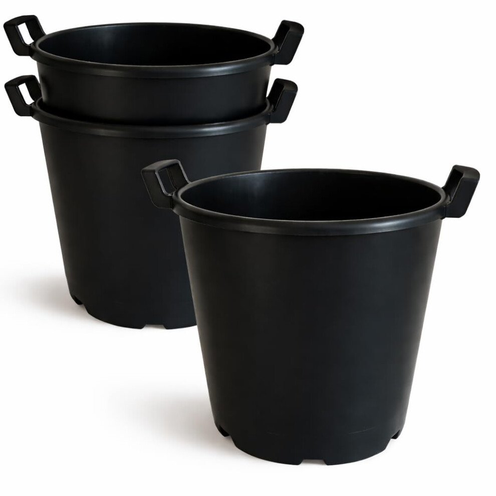 Pack of 3 - 30 Litre Heavy Duty Large Plastic Plant Pots with Handles - Outdoor Garden Planters Containers - Perfect for Flowers, Trees, Potatoes, Vegetables etc (Made from 100% Recycled Plastic)