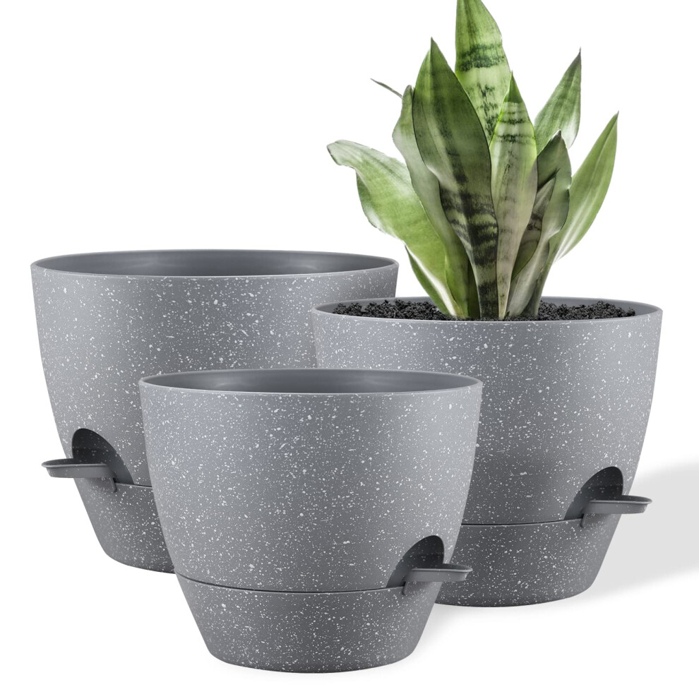 FORAGIFT 25/23/20cm Self-Watering Plant Pots Indoor, 3 Pack Large Plastic Plant Pots with Deep Reservior and High Drainage Holes for Indoor Outdoor Plants and Flowers, Grey with Speckles