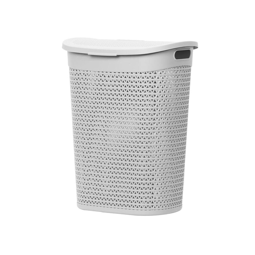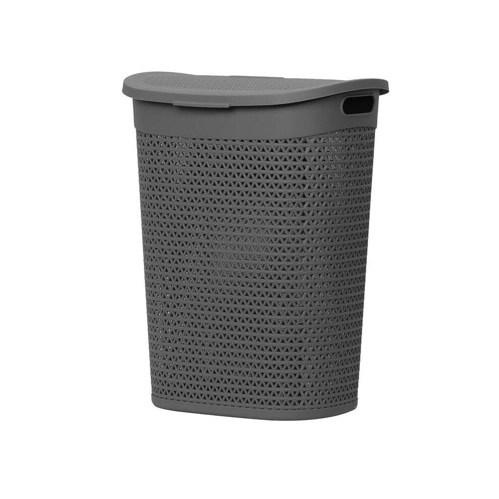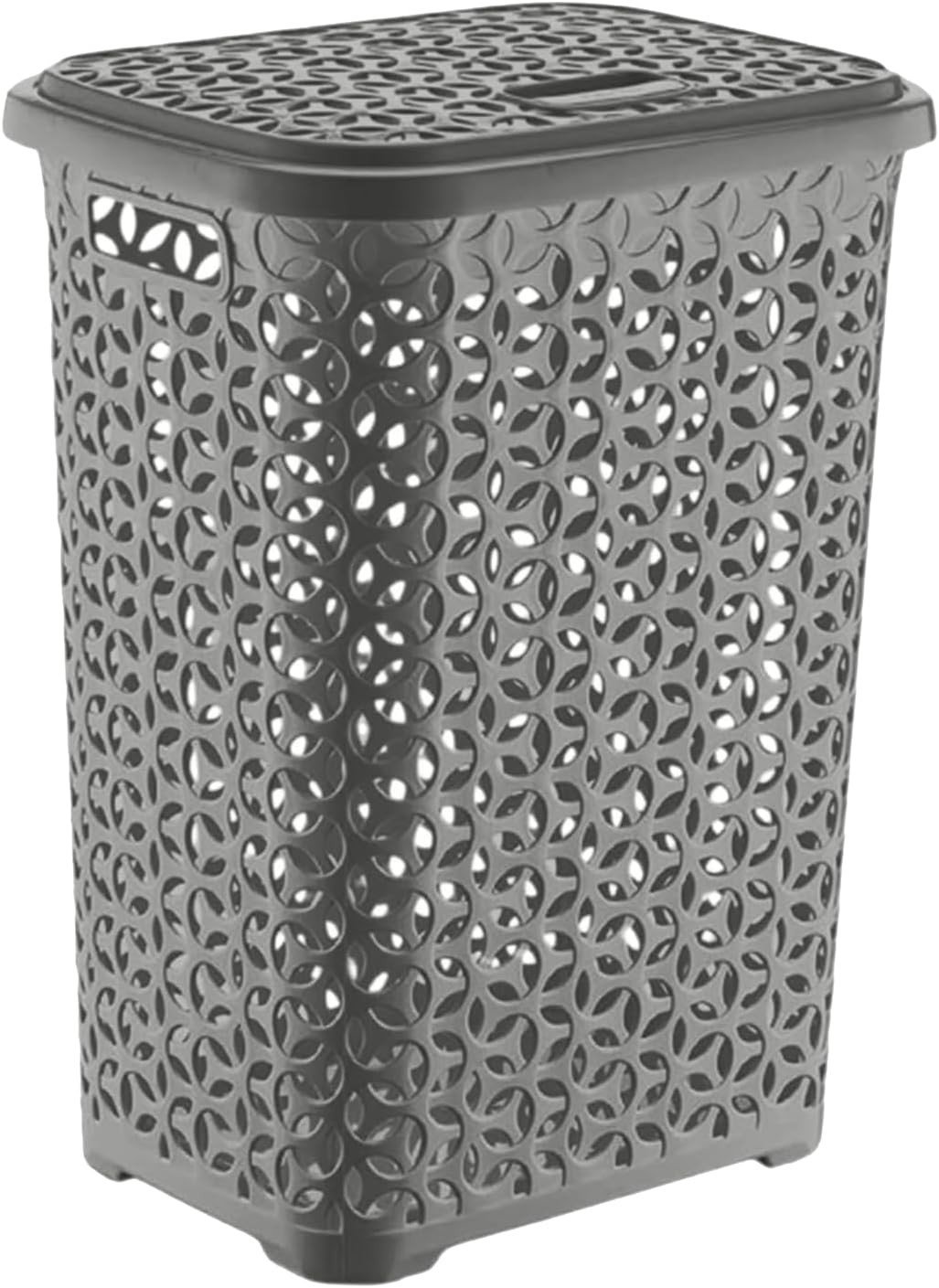 (Grey) 60 Litre Plastic Laundry Basket with Lid & Handles, Grey or White 60L Laundry Basket Curved Woven Rattan Plastic, Washing Basket Clothes