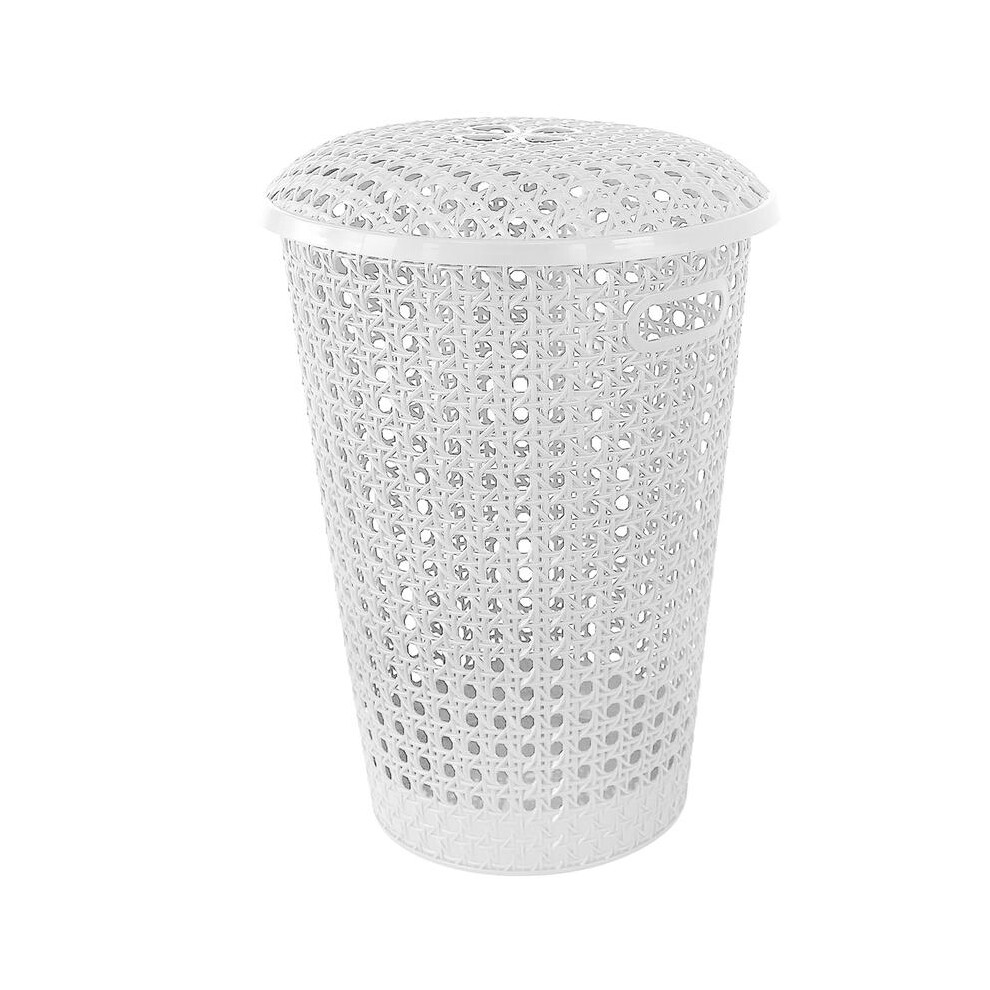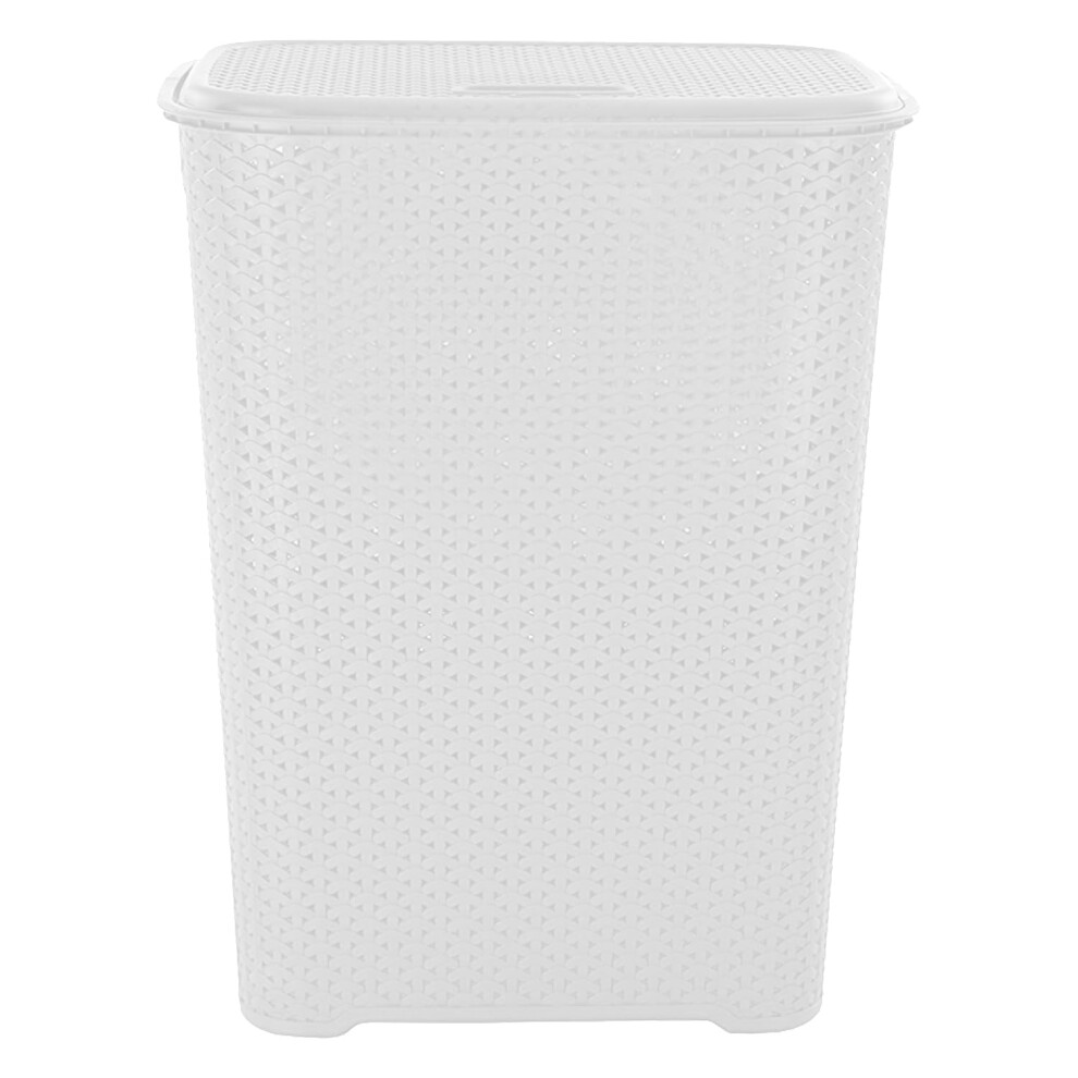(White) 60Litre Plastic Laundry Basket with Lid&Handles,Grey or White60L Laundry Basket Curved Woven Rattan Plasticï¼home Storage Basket with Lid Org