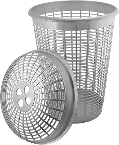 GREY/SILVER COLOUR PLASTIC LARGE LAUNDRY WASHING CLOTHES LINEN STORAGE BIN BASKET 58 LITRE WITH LID CIRCULAR ROUND