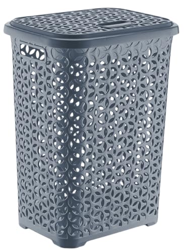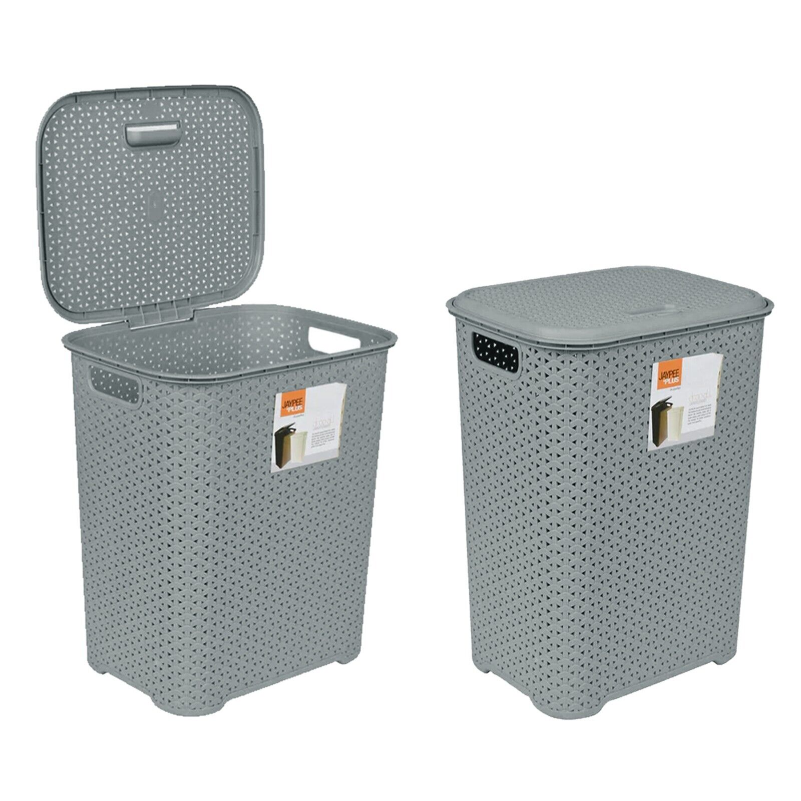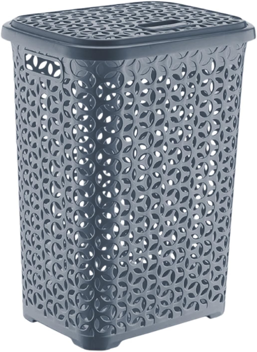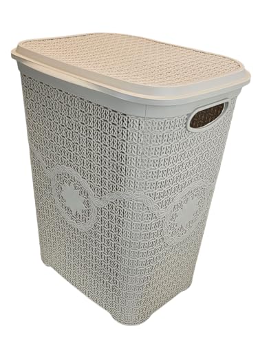 Best House | Plastic Laundry Basket With Lid | 60 Liters | GREY | 1 Pc | Large | Rattan Style | Clothes Storage Washing Bin Basket Hamper for Bathroom Bedroom (Pack of 1)