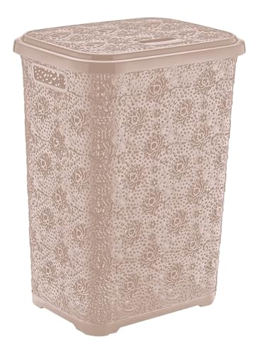 Best House | Plastic Laundry Basket | CREAM | 60 Litres | 1Pc | Large | Laundry Bin | Laundry Storage Basket with Lid | Clothes Storage Washing Bin Basket Hamper for Bathroom Bedroom (Pack of 1)
