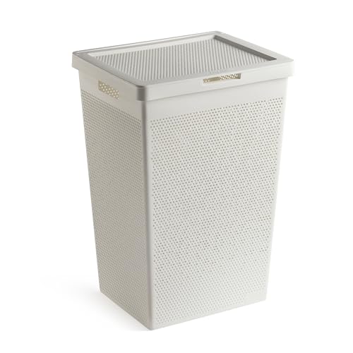 TATAY Bohol Laundry Basket with Lid, 60L Capacity, Polypropylene, BPA Free, 100% Recycled Plastic, White, Dimensions: 41 x 33 x 50 cm