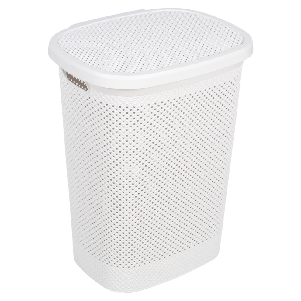 (White) 60 Litre Plastic Washing Laundry Basket With Lid