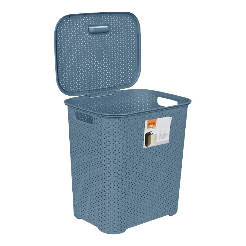 Small 45Litre Blue Plastic Laundry Basket with Lid & Handles Clothes Storage Bin
