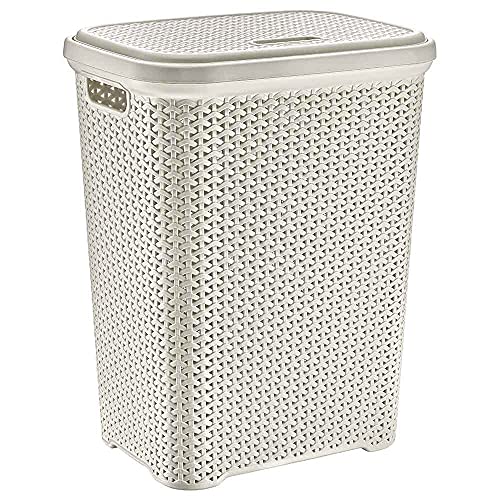 Best House | Plastic Laundry Basket | WHITE | 65 Litres | Large | Knitted/Rattan Style | Laundry Storage Basket with Lid | Clothes Storage Washing Bin Basket Hamper for Bathroom Bedroom (Pack of 1)