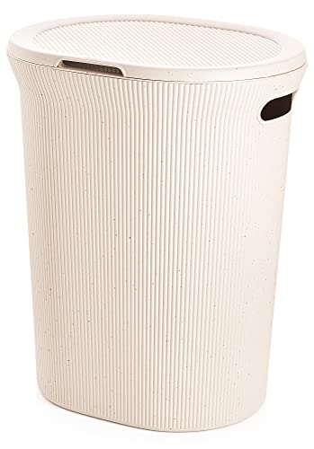 Superio Ribbed Collection - Eco-Friendly Decorative Plastic Laundry Hamper with Lid and Cut-Out Handles, (1 Pack) Basket Organzier for Bedroom Bathroom College Dorm Room 40 Liter