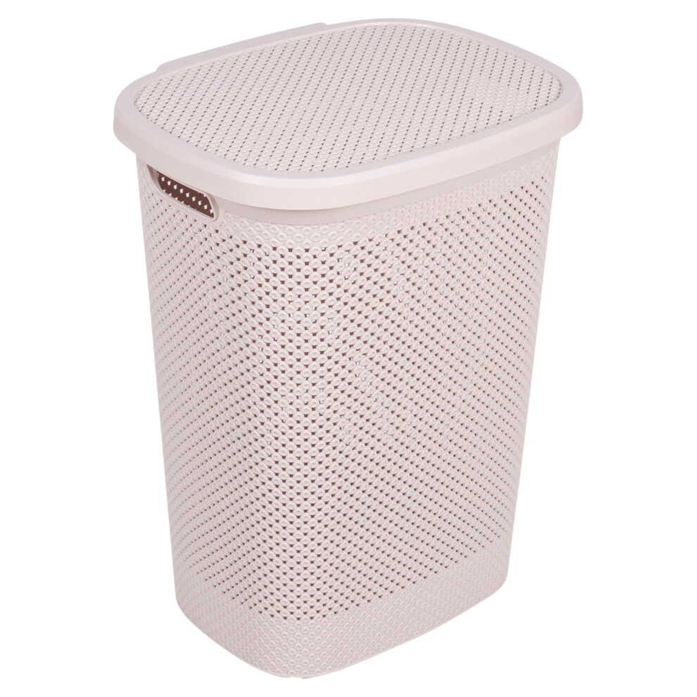 Drop All 45L Small Plastic Laundry Basket With Lid Beige Washing Dirty Clothes