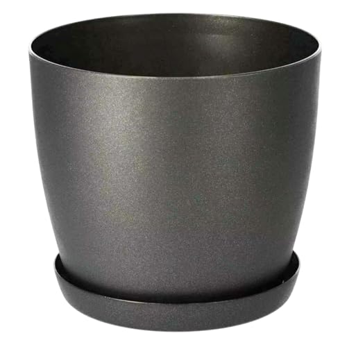 B2C Flower Pots 6 Colours 8 sizes Matt Plastic Plant Pots Planter + Saucer Tray Deco (Black Graphite Matt, 25 cm)
