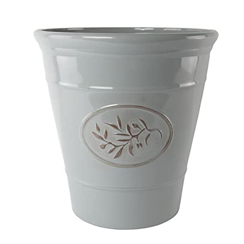 Classic Olive Outdoor Plastic Planter With Glossy Finish 40cm Frost Proof Long Lasting Flower Pot Garden Planter-Grey