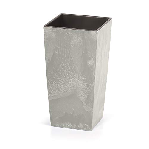 Prosper Plast Matte Flower Pot Marengo Concrete Colour - 14cm x 14cm x 26.5cm (LWH) 2L Capacity Plastic Planter Suitable for both Indoor and Outdoor Use