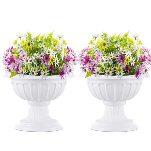 NUPTIO 2 Pcs Classic Urn Planter, 26cm Height Plastic Indoor or Outdoor Decorative Urn, Pedestal Plastic Planter, Vintage Style Flower Pot, Home Garden Front Porch Door Deck Balcony Decoration, White