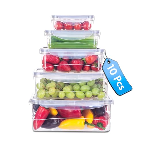 5-Piece BPA-Free Plastic Food Storage Containers with Steam Vent Lid - Microwave & Dishwasher Safe, Freezer Safe, Stackable, Leak-Proof Snap Lock Lids - For Soups, Fruit & Meal Prep (10 Pieces Total)