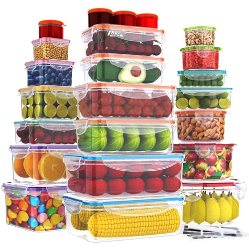 RockBerry 46 PCS Food Storage Containers with Lids Airtight- Plastic Container for Pantry Kitchen Organization-Microwave Dishwasher,Freezer Safe 100% Leak Proof (23 Stackable Boxes-23 Lids)