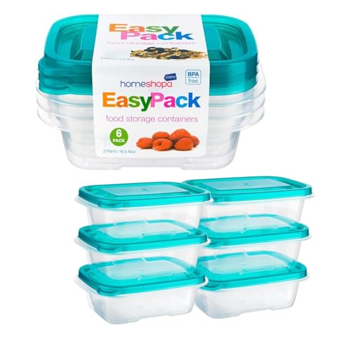 HOMESHOPA Food Storage Containers, 6 Pack Rectangular BPA Free Plastic Containers with Airtight Lids, Reusable, Stackable, Nestable Meal Prep Boxes, Microwavable, Freezer and Dishwasher Safe, 270 ML