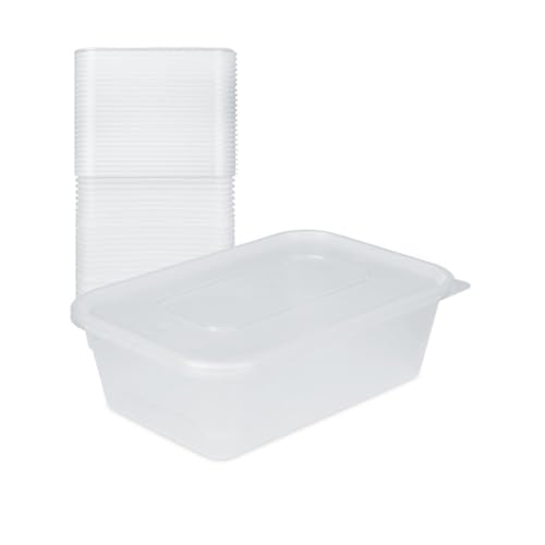 Globe Packaging GP 50 x Plastic 650ml Microwave Food Takeaway Containers with Lids - BPA Free, Stackable, Airtight, Reusable, Recyclable, Dishwasher & Freezer Safe - For Meal Prep & Food Storage Use