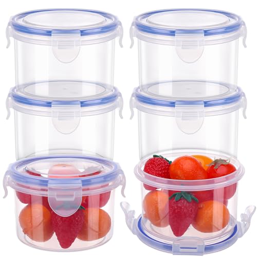 6 Pack Food Containers with Lids, Reusable Snack Pots Airtight Plastic Food Storage Container Round Leakproof Stackable Container Set Storage Pots with Clip-Lock Lid for Friut, Yoghurt, Snack(300ml)
