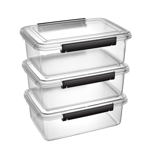 Cetomo 10L*3 Dog Food Storage Container, Airtight Food Containers, Silicone Seal and Snap Locks, Stackable Plastic Pet Food Bin with Lid for Dog, Cat, Bird, Storage Box, Clear, 10L/3.5kg-3 Pack
