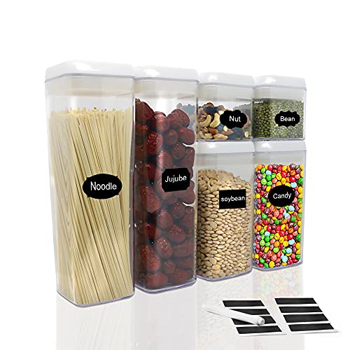 FurnitureXtra Stackable Kitchen Food Storage for Cupboards and Pantries - Clear Plastic Containers with Lids BPA Free Comes with Labels and Markers(Set of 6)