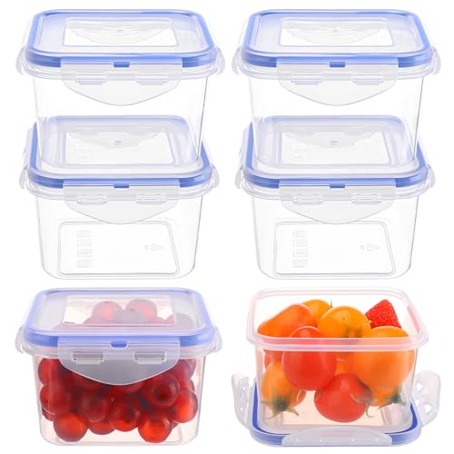 6 Pack Small Food Containers with Lids,Airtight Plastic Food Storage Container Snack Pots Square Leakproof Stackable Container Set Storage Pots with Clip-Lock Lid for Friut,Yoghurt,Snack(430ml)