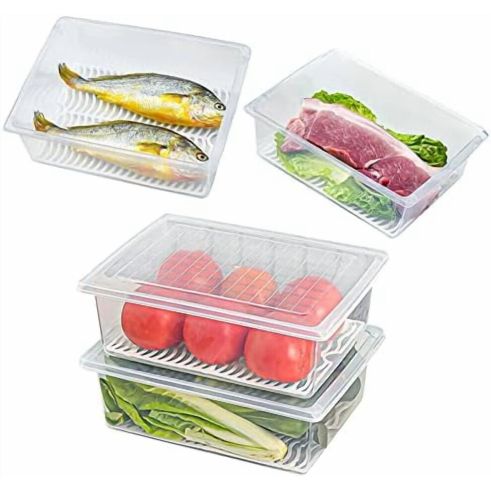 X-Large Stackable Plastic Food Storage Containers with Removable Drain Plate & Lid â for Fruits, Veggies, Meat (4PCS)