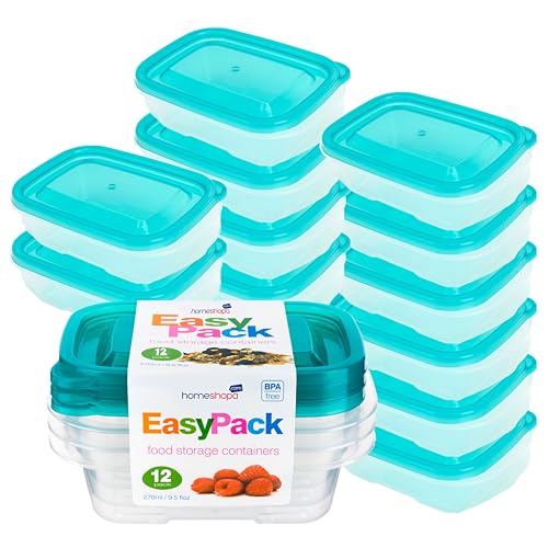 HOMESHOPA Plastic Food Storage Containers with Lids, 12 Pack 270ml Leakproof BPA Free Stackable, Micorwave Freezer & Dishwasher Safe, Reusable Airtight Meal Prep Lunch Box
