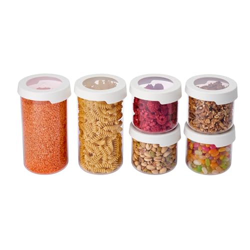 SmartStore | Round Food Storage Containers Set of 6 Rice Cake Plastic Jars| Clear Kitchen Organiser | Dishwasher Safe BPA Free | Stackable Space-Saving Pantry Jars | 4 x 0.75L 2 x 1.45L Lids Included