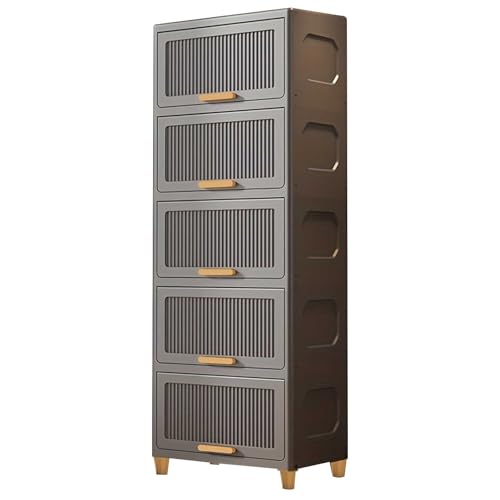 Esenlong 5-Tier Plastic Storage Boxes,Storage Bins with Flip-Up Magnetic Doors,Wardrobe Closet Storage Organizer for Bedroom Living Room Study Office(40x30x132cm)