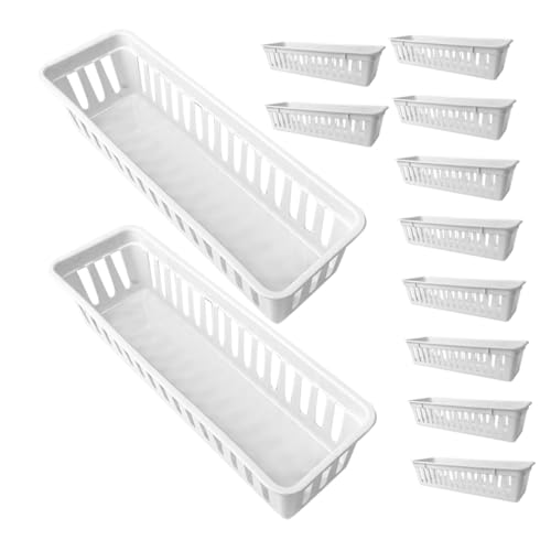 HLRTBCN 12pcs Plastic Classroom Storage Bins Rectangular Desk Organizer Trays for Pens Pencils Craft Supplies Versatile Storage Basket for School Office Home Use Aqiong