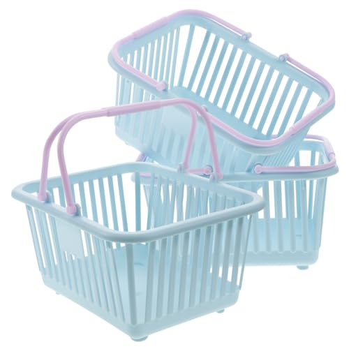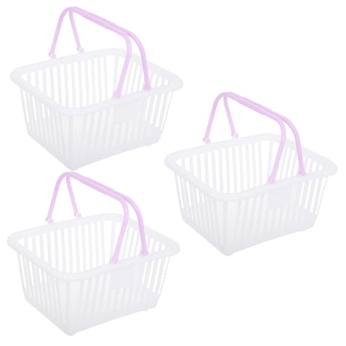 Garneck 3pcs Small Plastic Storage Baskets Toy Bins Handles for Classroom Organization Shopping Use