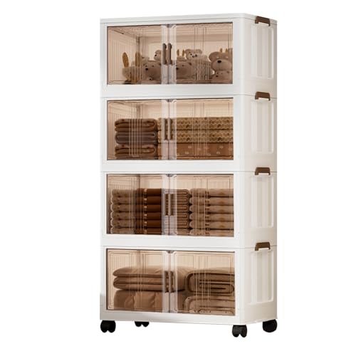 Esenlong 4-Tier Stackable Storage Boxes with Wheels,Plastic Storage Bins with Lid,Storage Drawers with Front Door,Collapsible Storage Cabinet for Bedroom Living Room Study Office