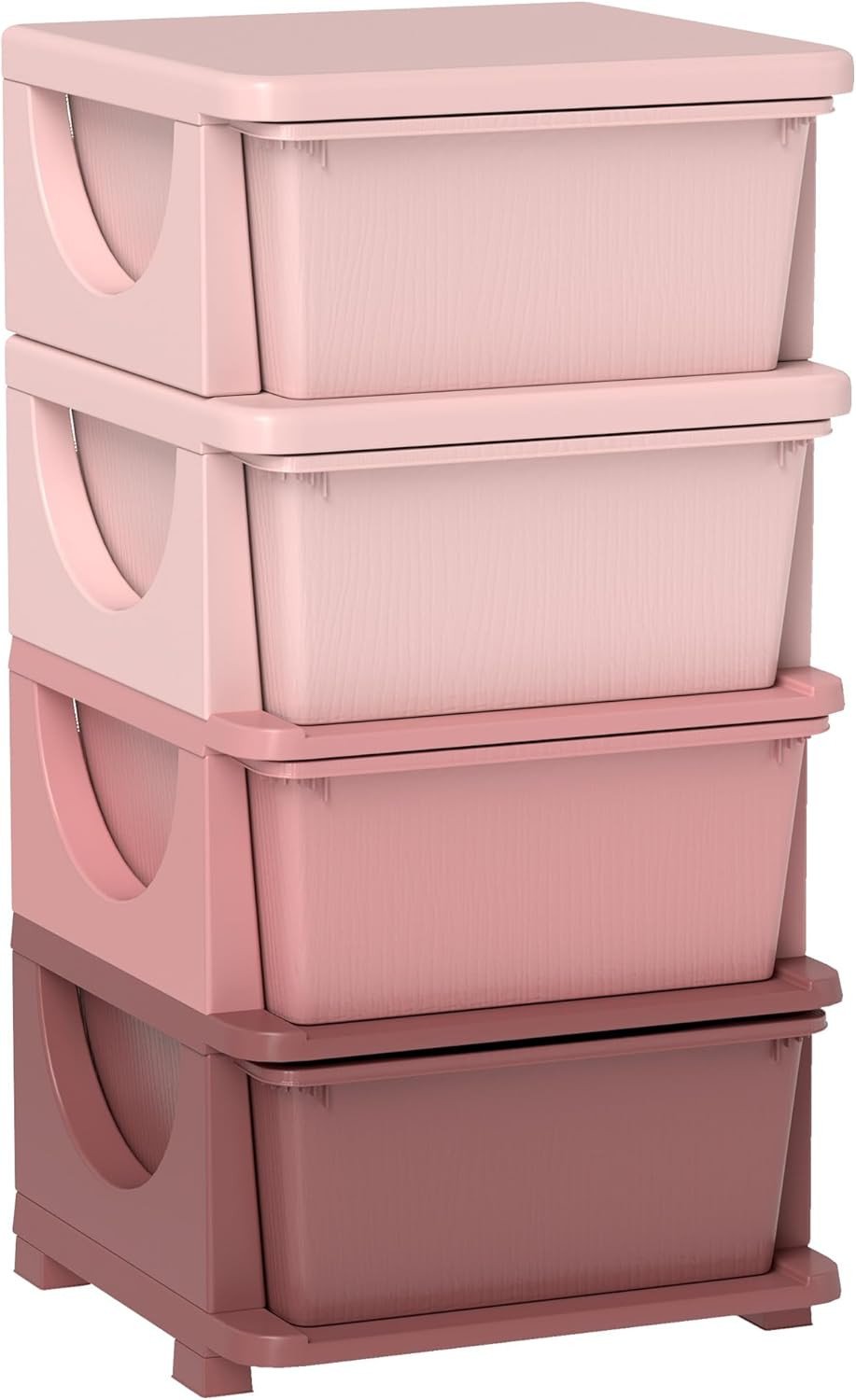 Four-Tier Kids Storage Boxes, Plastic Storage Units with Four Drawers, Pink